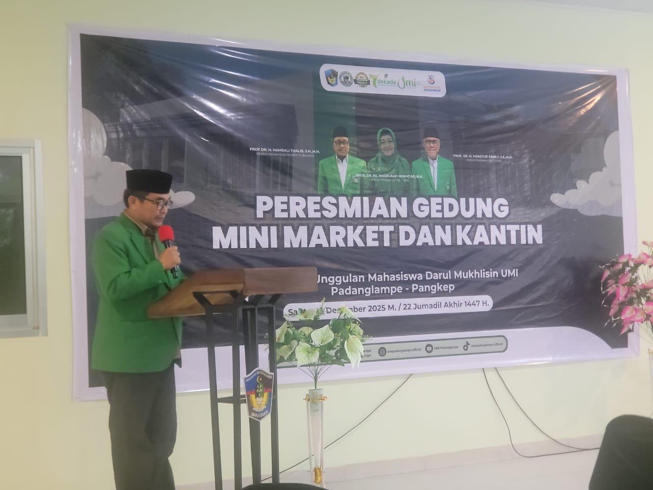 PANGKEP — Ketua Pengurus Yayasan Wakaf Universitas Muslim Indonesia (YW UMI), Prof. Dr. Hj. Masrurah Mokhtar, MA, meresmikan Mini Market dan Kantin Pesantren Unggulan Mahasiswa UMI Darul Mukhlishin Padanglampe, Sabtu, 13 Desember 2025.
