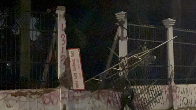 Pagar DPR RI roboh oleh sejumlah massa, Jumat (29/82025).